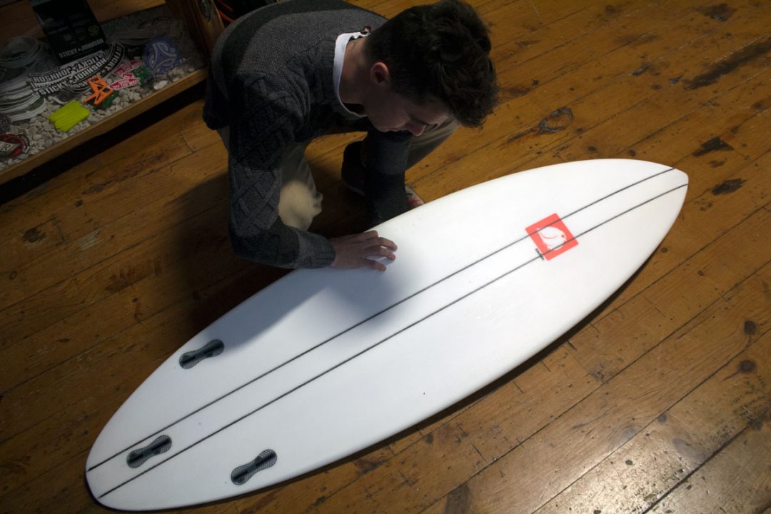 Repair guru Scotty Squizz getting a new experimental superflexy futurelite ready to hit the water. It’s got a new laminate too and weighs even less than a traditional futurelite. Hope i get a go on it too..